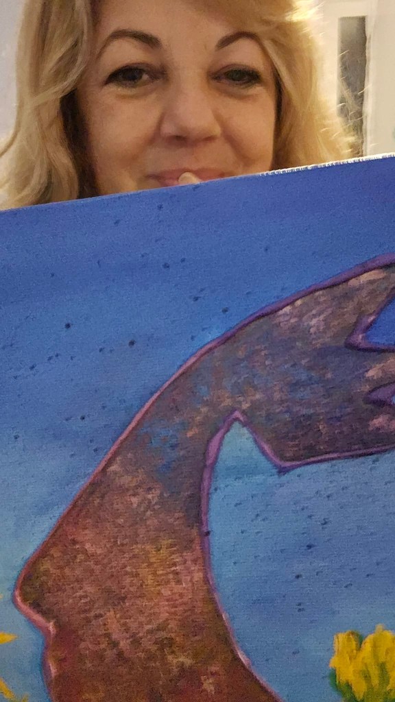 I am so lucky to have been presented with a beautiful piece of art, a painting within the series of “The Queen Project” masterfully done be Anna Konya, an outstanding artist who resides in Tirana but is a world citizen, a student and teacher of all the beautiful things that life has to offer in Albania and other places.